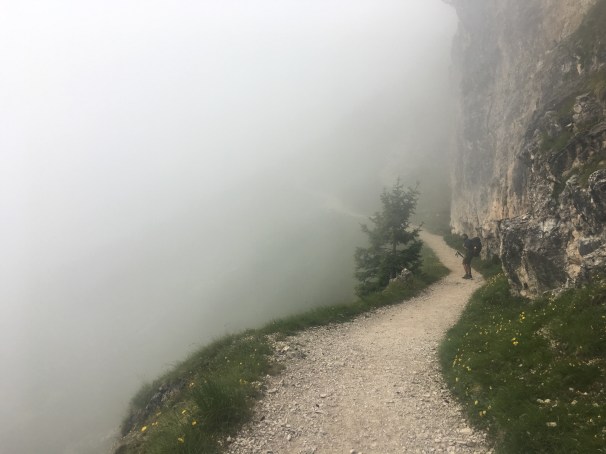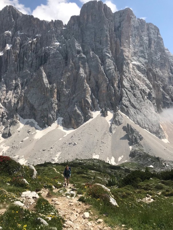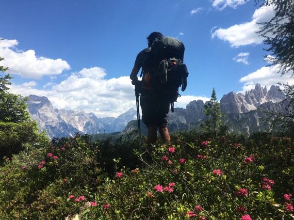 The sun hasn’t been out in a while and ominous grey skies are taunting you. Trekking since 7:30am, you’ve done quite a few switchbacks today alone–both up and down–and your ability to take in scenery is starting to dissipate. Literally. Your eyes are darting around, trying to take it in, but struggling to adjust to what is near and what is far, to how these mountains could possibly be real, all jagged and vociferous. The promise of a warm Rifugio with a few minutes of a hot shower and a three-course meal is so alluring that your uphill hike is to the rhythm of a mouthwatering daydream of pasta and panna cotta, when you’re forcefully brought back to reality with a loud and defeated, “I f**ked up”.