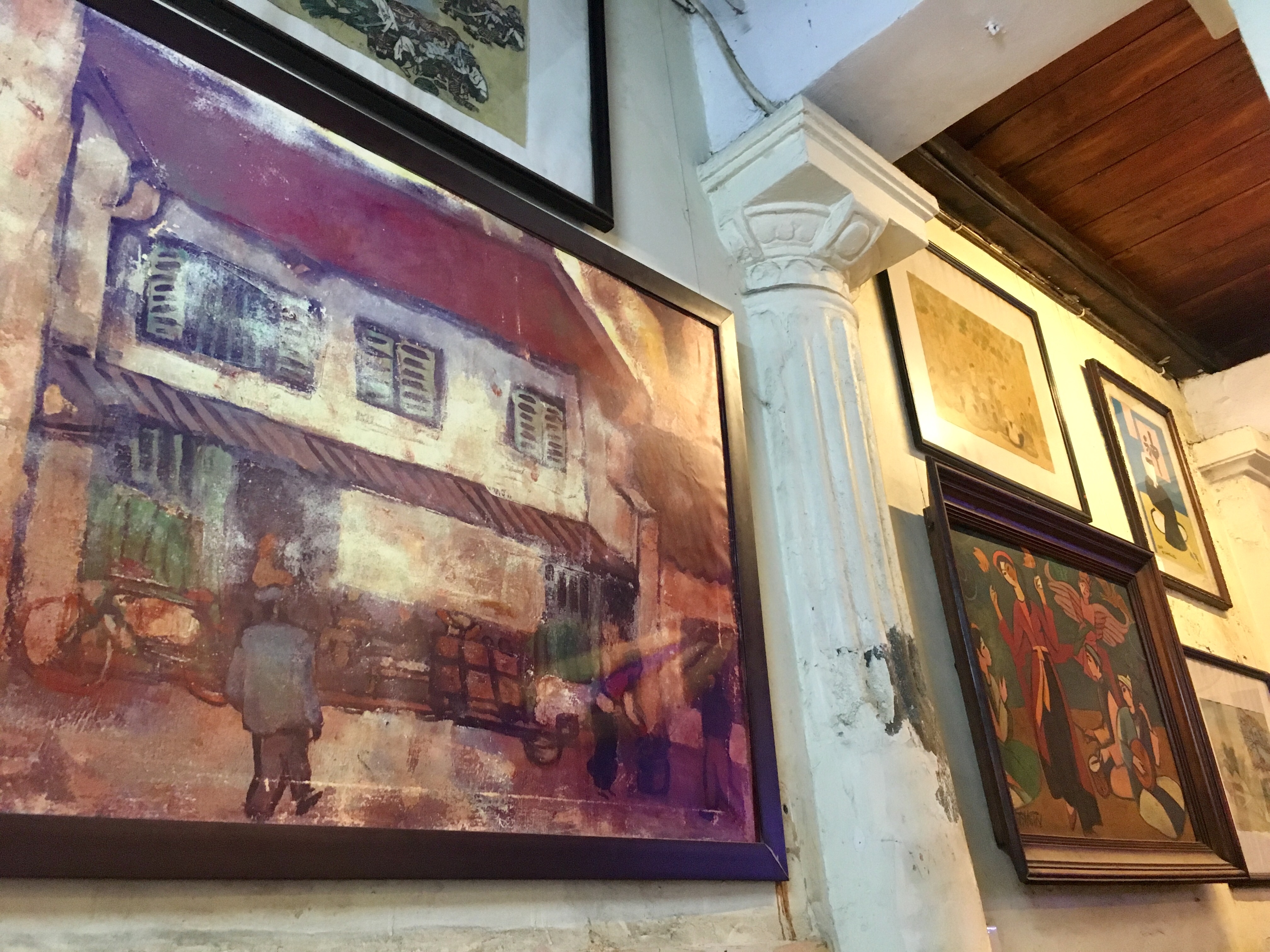 In my (tourist) opinion, the best place to go is Cafe Lam. The coffee is authentic and the atmosphere can’t be beat. Steeped in history, Mr. Lam opened his eponymous cafe as a coffee street stand in 1949 and moved into its current space in 1956, where it became a haven for extremely talented Vietnamese artists during the American war. Many of the patrons couldn’t afford to pay for their coffees or hours spent in the cafe, so they paid by leaving behind their art. Today, Mr. Lam’s art collection–covering the walls of Cafe Lam and beyond, as you’ll see in the photos above–is said to be worth quite a lot, though he insists it will never be for sale.