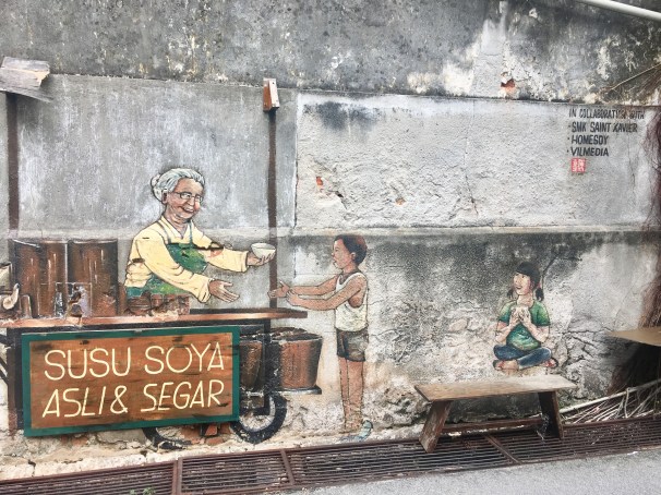 Hidden in an alley off of one of George Town’s main streets, Chulia Street, this lively mural is like an ode to an old soy milk stall that used to dot the streets in Penang.