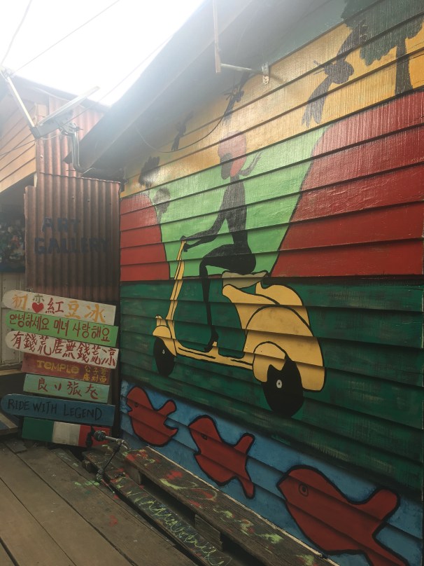 But George Town is also–unexpectedly–a city filled with, and known for its, street art. The city invested in making street art one of its main tourist draws after its UNESCO designation and it has really paid off. Capturing the culture and history of Penang, and the spirit and every day lives of its people, the street art we found exploring George Town on foot was captivating, unique, colorful, educational, and interactive. The murals are full of energy and really made me want to learn more. If you do, too, the two best resources I turned to for information on George Town’s street art, which I largely drew upon for this blog post, are: this amazing rundown complete with a map from travel blogger Izzy Pulido of The Next Somewhere, and this great deep-dive on George Town’s street art by Milijana at World Travel Connector.